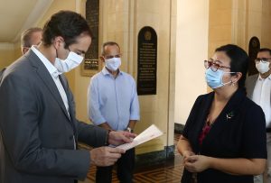Ao lado do secretário estadual de saúde, André Longo, e do secretário de Educação, Fred Amâncio, o governador Paulo Câmara recebeu, na manhã desta sexta-feira