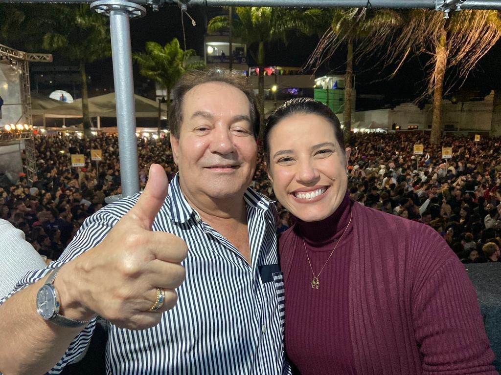 Na foto, Isaías Régis ao lado da governadora Raquel Lyra durante uma das noites da 31ª edição do FIG que foi considerada a pior de todos os tempos. Imagem: Blog VeC Garanhuns