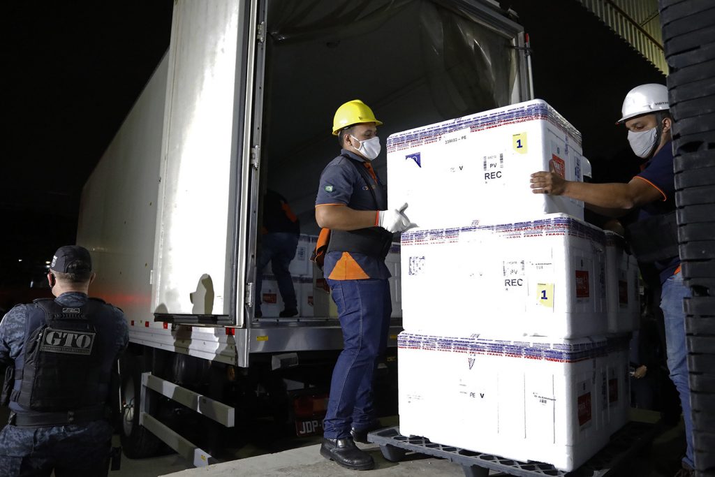Serão utilizados na logística de distribuição seis caminhões, sendo quatro refrigerados, adequados para longas distâncias. Os veículos não refrigerados não ensejam qualquer risco às vacinas, pois elas estão armazenadas em caixas térmicas a uma temperatura entre quatro e oito graus, garantindo uma durabilidade de no mínimo 48 horas.