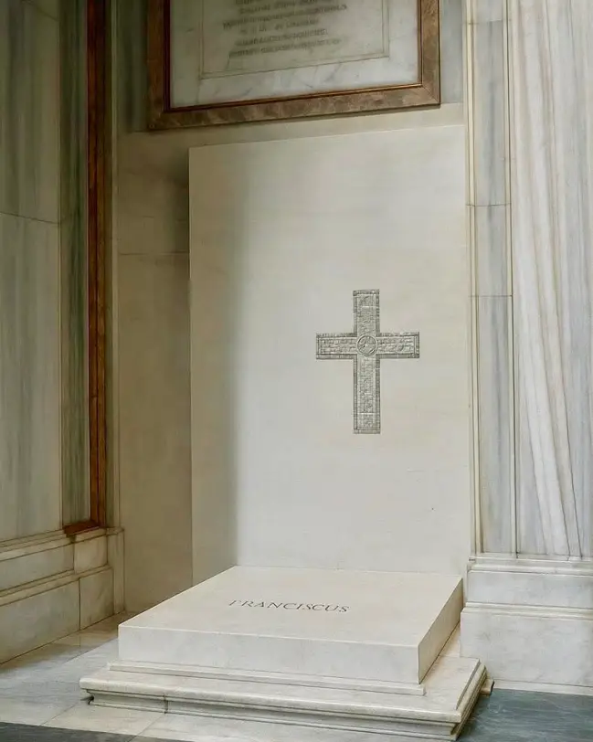 Após a missa, o caixão foi levado em procissão até o local de sepultamento, no interior da Basílica. O túmulo, de design simples e elegante, construído em pedra clara e polida, reflete a modéstia e o foco no essencial que caracterizaram o seu pontificado. Uma inscrição discreta identifica o Papa Francisco, marcando o seu lugar de descanso eterno neste local que tanto amava.